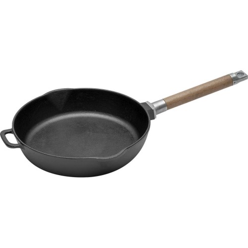 Сковорода Гардарика чугунная со съемной ручкой и двумя сливами 24 см. Материал посуды - чугун. Как показывает опыт, нет лучшего материала для изготовления посуды, нежели чугун. Во-первых, чугун считается экологически безопасным, чистым материалом. Во-вторых, он может быстро нагреваться до высоких температур и держать в себе тепло долгое время. Такая практичная посуда пробудет в эксплуатации ни один год. Чугунную посуду покупают для плит любых видов. Она удобна как для жарки, так и для тушения.