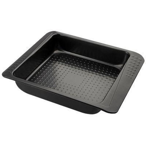 Форма для запекания с рельефным дном Размер внешний: 27*23*4,8 см Размер внутренний: 21*21*4,7 см Толщина стали 0,4 мм Цвет: черный Материал: углеродистая сталь с антипригарным покрытием * проста и удобна в использовании * не изменяет цвет и вкус пищи * легко моется * антипригарное покрытие исключает необходимость использования большого количества масла * подходит для мини печей и духовок * используется для запекания пищи в фольге, на бумаге для выпекания, а так же непосредственно в форме (в данном случае рекомендуем использовать небольшое кол-во масла)