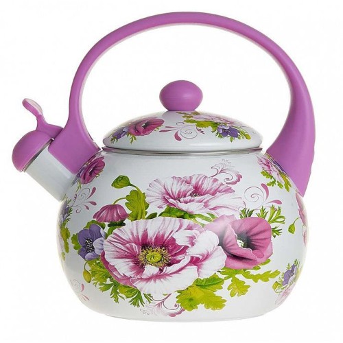 EM-25101/14 Чайник эмалированный со свистком 2,5 л. "Нежные маки" Параметры Объем 2,5 л Описание Чайник эмалированный со свистком Трехслойное внутреннее и внешнее эмалевое покрытие, устойчивое к воздействию пищевых кислот Эргономичная пластиковая ручка Зачерненное дно с повышенной термоотдачей Может быть использован на всех типах кухонных плит: электрических, газовых, керамических, индукционных Классический дизайн Экологически чистые материалы Подходит для мытья в посудомоечной машине Упаковка: цветная коробка