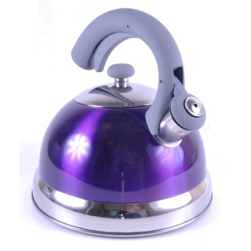 Чайник стальной (2.5 л, фиолетовый) своим современным стильным дизайном украсит любую кухню. Благодаря утолщенному, капсулированному дну, чайник быстро нагревается и медленно остывает.