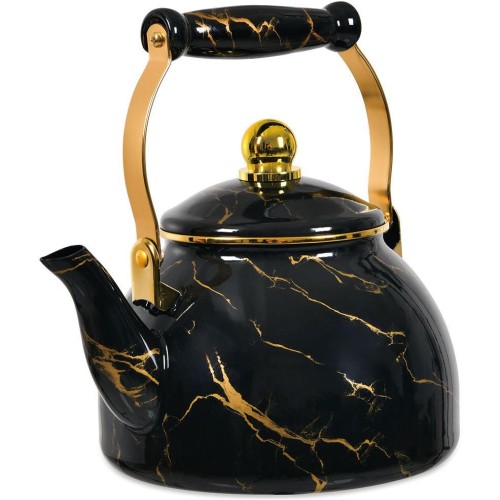Black marble Чайник 2,8 л, эмалированная сталь, комбинированная ручка "под золото", внутреннее эмалированное покрытие, наружное покрытие - эмаль с рисунком. Подходит для индукции.