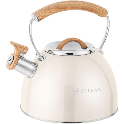 Чайник со свистком, 2,5 л, нержавеющая сталь, ИНДУКЦИОННОЕ ДНО, курковый механизм, внешнее покрытие – антипригарное цветное покрытие, устойчивое к высоким температурам, комбинированная фиксированная ручка с покрытием soft-touch «под дерево».