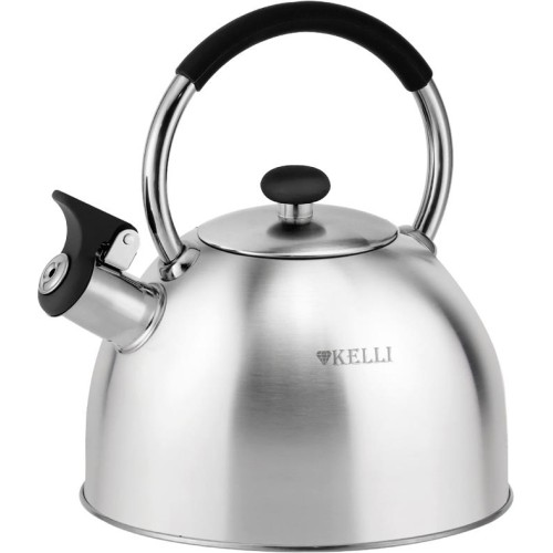 Металлический чайник со свистком; Объем: 2,5 л; Высококачественная нержавеющая сталь; Многослойное капсульное дно; Матовая полировка; Эргономичная ручка, не нагревается; Подходит для всех видов плит