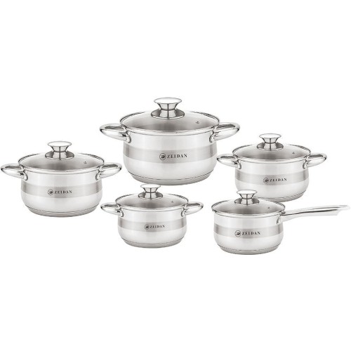 Набор посуды, 10 предм. (4 КАСТРЮЛИ С КРЫШКАМИ: 1.7 Л (d16 см), 2.5 Л (d18,0 см), 3.4 Л (d20 см ), 5.9 Л (d24 см ), СОТЕЙНИК С КРЫШКОЙ – 1,7 Л ( d16 см), нержавеющая сталь, комбинированная полировка снаружи, зеркальная полировка внутри, крышки - стекло, 5-ти СТЕПОВОЕ КАПСУЛИРОВАННОЕ ИНДУКЦИОННОЕ ДНО.