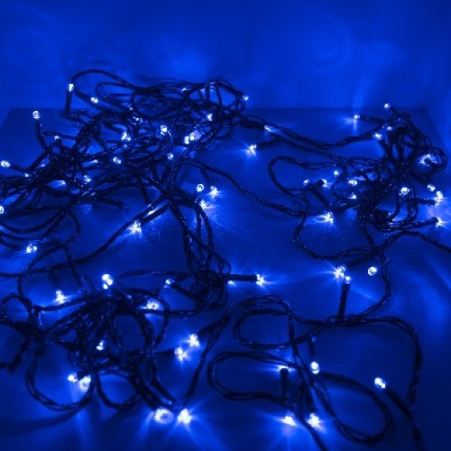 FUNRAY RL-110B Гирлянда светодиодная рисовая 10М, 100LED, гирлянда со световыми элементами необычной декоративной формы, длина изделия составляет 10 метра, количество светодиодных ламп 100 шт, питание от сети 220В, цвет свечения: синий, присутствует контроллер, 8 режимов свечения, черный шнур, гирлянда имеет степень защиты IP20 - защита от твердых частиц размером от 12 мм.