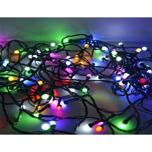 Цвет: мульти (6 цветов) Количество светодиодов: 100 шт Цвет шнура: темно-зеленый Контроллер: 8 режимов Источник питания: 220В
