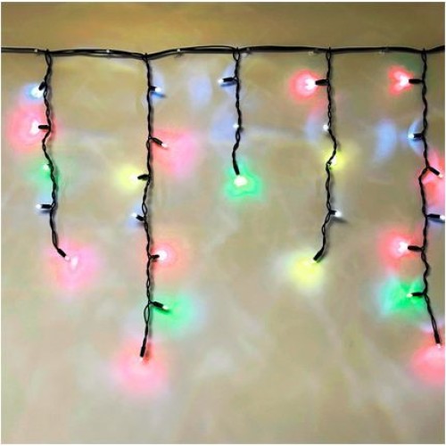 Гирлянда "Бахрома" - применяется для декорирования арок, фасадов, витрин. Представляет собой горизонтальный гибкий шлейф, от которого исходят вертикальные нити различной длины и действительно напоминает бахрому. Цвет свечения - мультицвет (синий, красный, зеленый и желтый). Размеры гирлянды - 3х0,7м. Длина шнура от вилки до начала гирлянды - 1,5м
