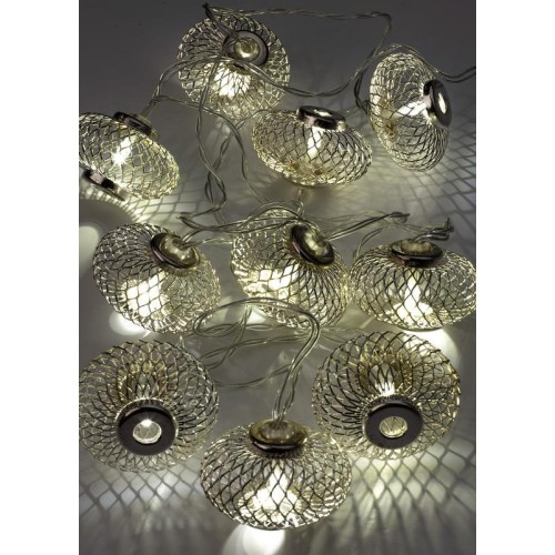 Интерьерная гирлянда из 10 металлических сетчатых серебряных фонариков KOC_GIR-B120 теплый белый свет. Длина светящейся части 1,8 метров +0,3м. Фонарики украсят детскую, гостиную, спальную, так же придаст уют и тепло рабочему месту, создадут атмосферу волшебства и помогут удивить гостей! Гирлянда станет изюминкой на любом праздничном мероприятии или выездной фотосессии и свадьбы. Используйте ее, где захотите, даже если поблизости нет розетки или удлинителя. Может служить как дополнительный источник света. Размер фонариков 5х5х3см. Работает от батареек АА