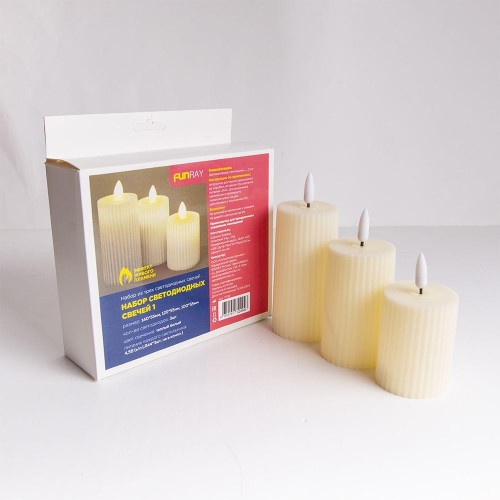 Набор светодиодных свечей — это находка для тех, кто любит мягкий свет от горящей свечи. Корпус выполнен из тактильно приятного пластика. А вот эффект живого пламени достигается с помощью светодиодов, спрятанных внутри. Основными преимуществами светодиодных свечей на батарейках являются: • Безопасность. Нет риска пожара от ветра, неудачного падения свечи или попадания посторонних предметов. • Срок службы. Продолжительность «горения» такой свечи ограничена только батарейками. Которые, в свою очередь, легко заменить. • Универсальность. Использование свечи не требует особых условий. А значит, можно использовать ее, не боясь оставить следы от тающего воска. В маленьких пространствах больше не будет скапливаться запах дыма. Набор состоит из 3 свечек размером от 10 до 14 сантиметров. Свечи можно использовать для украшения интерьера, создания декоративных композиций. Мягкий теплый белый свет, который они излучают, создадут в комнате расслабляющую атмосферу. Такой набор станет отличным подарком на день рождения, календарные праздники и другие памятные события.
