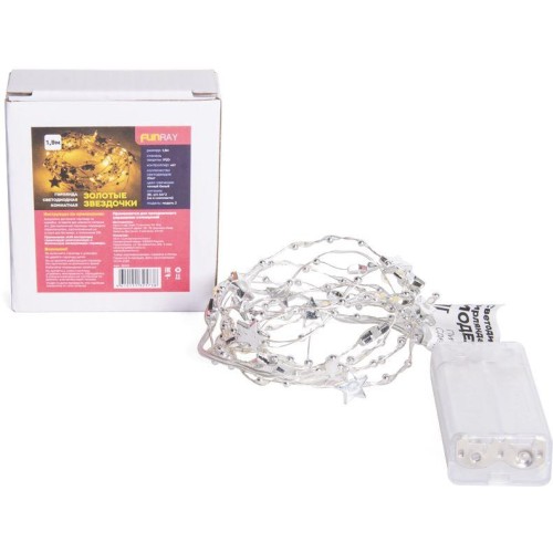 Изящная гирлянда длиной 1,9 метра с теплым белым свечением создает атмосферу праздника. Тончайшая проволока практически незаметна, зато золотистые шарики и звездочки красиво переливаются в мягком свете. Такая гирлянда идеальна для украшения небольших елочек, создания уютной подсветки на полках или оформления праздничного стола. Она работает от двух батареек типа АА – размещайте без привязки к розетке для создания волшебной атмосферы в любом уголке дома.
