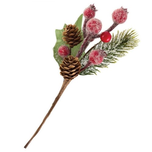 Украшение декоративное "Веточка". материал: пвх, пластмасса, бумага, пена, шишка. размер: длина 21см. упаковка: пакет+бирка.