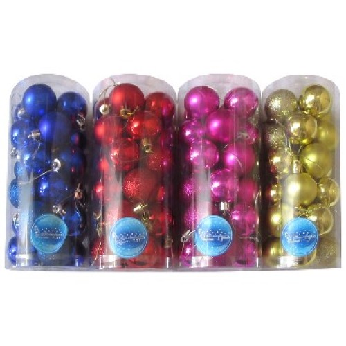 Набор шаров. размер: 4 см. кол-во: 24 шт. цвет в ассортименте как на фото. материал: пластмасса, полиэстер. упаковка: ПВХ-коробка.