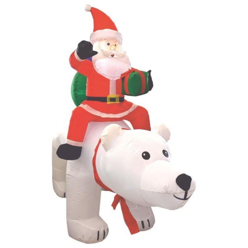 Представляем Вам новинку нашего ассортимента - надувные фигуры для украшения к Новому году! Новогодние игрушки, елочные украшения довольно традиционны и повторяются из года в год. Надувные новогодние украшения ярко выделят именно ваш магазин. Они наполняют пространство атмосферой праздника! Надувная фигура с Дедом Морозом верхом на белом медведе - это великолепное праздничное украшение, которое непременно создаст неповторимую атмосферу радости и веселья. Есть подсветка. Установка надувной фигуры занимает минимум времени и не требует специальных навыков. Работают от сети,компрес/колышк/верев,90*190*182см,IP44,220В