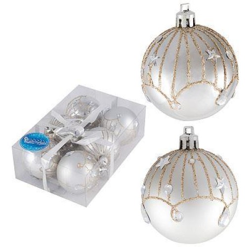 Набор шаров размер: 6 см кол-во 6 шт цвет серебро+золото материал: пластмасса, полиэстер упаковка: ПВХ-коробка