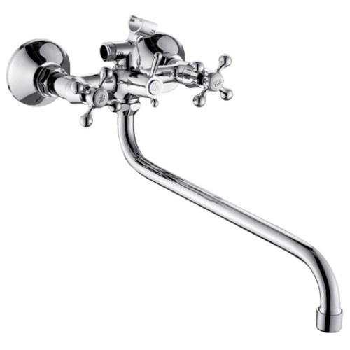 Смеситель универсальный с круглым изливом и переключателем для душа - Покрытие корпуса: хром - Кран-букса латунная с керамическими пластинами (угол поворота-90 градусов) - Шланг: длина 1,5 м - С поворотным изливом 300 мм - В комплекте с лейкой