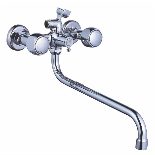 Смеситель универсальный с круглым изливом и переключателем для душа - Покрытие корпууса: хром - Кран-букса латунная с керамическими пластинами (угол поворота 90 градусов) - Шланг длина 1,5 м - С поворотнымизливом 300 мм - В комплекте с лейкой