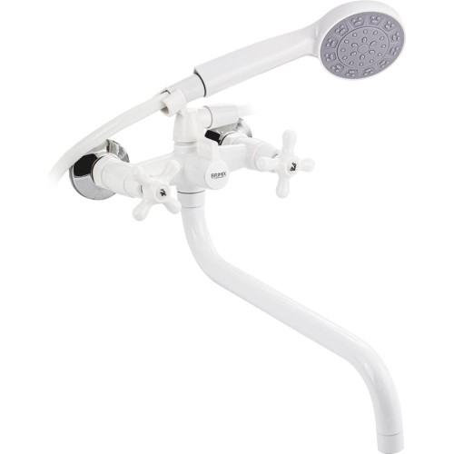 BRIMIX 4407 Смеситель для ванны с длинным изливом, металлокерамика, с шаровым переключением, из высокопрочного АБС пластика, ручка КРЕСТ, цвет БЕЛЫЙ.