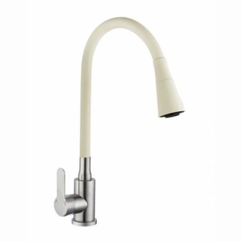 Смеситель для кухни с гибким изливом, серия Садко, АНТЕЙ - Материал: нержавеющая сталь (SUS304) - Вес смесителя: 1,220 кг - Цвет: сатин + бежевый - Картридж: o35мм, пластиковая с керамическими пластинами, WANHAI - Излив: поворотный, высокий, гибкий - Аэратор: пластиковый, съемный, 2-х режимный - Крепление: FAST FIX (гайка) из 201 стали В комплекте: гибкая подводка 35см (2шт.), крепление, декоративная подставка под смеситель (1шт.), резиновая прокладка (1шт.), резиновое уплотнительное кольцо (1шт.), пластиковая шайба (1шт.), паспорт смесителя (1 шт.)