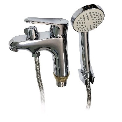 Смеситель на раковину шаровый с переключением на душ, хромированный, с коротким изливом, литой корпус, ручка с выемкой, шаровый. Крепление резьба - гайка, картридж d = 40 мм. Аэратор для экономии воды. Материал изготовления — ЦАМ (цинк-алюминий-медь) + нержавеющая сталь. Габаритные размеры: высота 160 мм, длина 145 мм, длина излива 105 мм, диаметр посадочного седла 45 мм, длина резьбы 40 мм, длина подводки 350 мм. Вес - 1,50 кг, объём - 0,00393 м3. В комплекте паспорт, корпус, подводка 1/2, крепеж, набор прокладок, лейка, шланг и кронштейн.