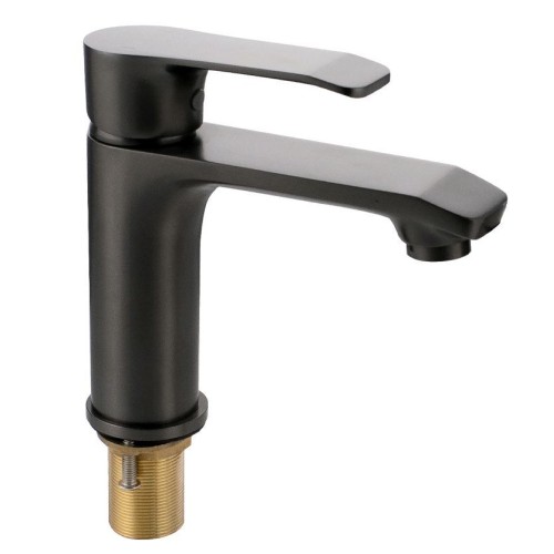 Смеситель для раковины, латунный корпус под цвет ТИТАНА, с коротким изливом, литой корпус, литая ручка, шаровый. Крепление резьба - гайка, картридж d = 35 мм. Аэратор для экономии воды. Габаритные размеры: высота 155 мм, длина 165 мм, длина излива 125 мм, диаметр посадочного седла 50 мм, длина резьбы 50 мм, длина подводки 500 мм. Вес - 1,500 кг, объём - 0,00340 м3. В комплекте паспорт, корпус, подводка 1/2, крепеж, набор прокладок. Габаритные размеры коробки: ширина 200 мм, высота 90 мм, глубина 65 мм.