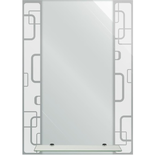 Зеркало с тонированным матированным рисунком. Простота и качество делают зеркало практичным дополнением к интерьеру ванной комнаты, прихожей или гардеробной. Модель не занимает много места на стене и благодаря возможности горизонтальной и вертикальной установки, поможет реализовать разные дизайнерские идеи. Особая обработка кромки украшает изделие, придавая ему аккуратный и законченный вид. Зеркало изготовлено из полотна AGC Mirox, толщина зеркального полотна 4 мм. Изделие демонстрирует значительную устойчивость к влажности помещения и перепаду температур. Профессиональный универсальный крепеж в комплекте, подходит для всех типов стен. Габаритные размеры: высота 700 мм, ширина 500 мм, длина полки 400 мм. Вес - 5,000 кг, объём - 0,00700 м3.