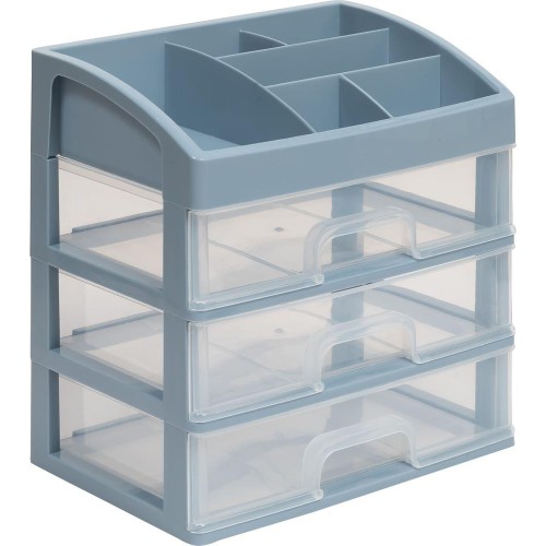 Органайзер для косметики 3 ящика (серо-синий/прозрачный)