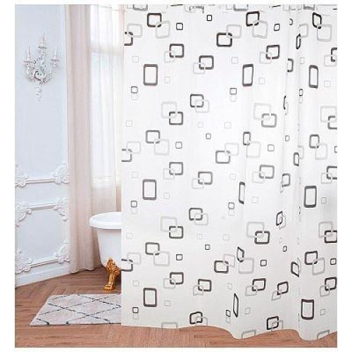 материал - ПЕВА, пластмассаа размер: 180*180 см толщина - 0,04мм в комплекте 12 колец дизайн - Квадраты Упаковка: пакет с европодвесом, цветной вкладыш
