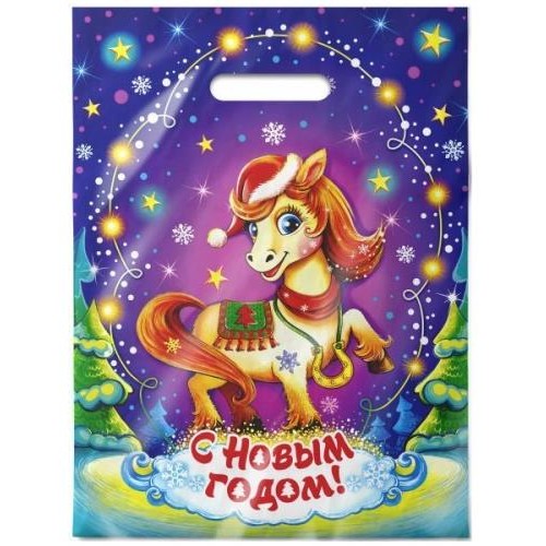 Пакет новогодний, СИМВОЛ ГОДА, красочный, плотный, вместительный, защищает от повреждений и сохраняет в тайне содержимое , габаритные размеры 30х40 см.