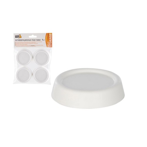 Белые круглые антивибрационные подставки. Материал: ТЭП. Толщина 15мм, диаметр одной подставки 63мм. - Поглощают вибрацию и снижают уровень шума во время работы бытовых приборов; - Предотвращают смещение стиральной машины во время работы; - Защищают любые напольные покрытия от деформаций и повреждений; - Уменьшают износ бытовых приборов; - Подставки устанавливаются под ножки стиральных, сушильных, посудомоечных машин, холодильников, кухонных плит, спортивного инвентаря и мебели.