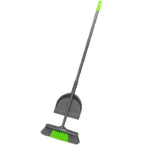 Универсальный комплект для уборки - щетка+совок. Щетка имеет щетину средней жесткости, расположенную под углом, что позволяет максимально эффективно использовать ее для сбора мусора. Совок удобно хранить вместе с щеткой, благодаря системе "клик". Рукоятка имеет петлю для хранения в подвешенном состоянии.