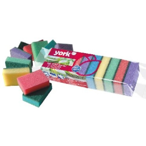 Набор из 10-ти классических двуслойных разноцветных губок для мытья посуды. Губки имеют удобный размер для повседневного использования. Отлично пенят моющее средство. Грубый слой отчищает самые стойкие загрязнения и не истирается. Состав: полиуретан, фибра. Размер одной губки: 9х6х2,9 см.