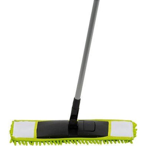 Материал: полипропилен, сталь, микрофибра 900 гр/м2 (полиэстер 100%). Размер платформы: 39*9 см Размер насадки: 41*12 см Длина рукоятки (черенка): 110 см. Диаметр рукоятки 19мм Рукоятка без телескопа. Цвет платформы: черный. Цвет насадки: зелёный Инд.упаковка: пакет + бумажная этикетка Микрофибра притягивает и удерживает частицы пыли за счет безупречных электростатических свойств материала. Может быть использована для сухой и влажной уборки для различных материалов поверхности. Сменная насадка: артикул 310311 Насадка для швабры из микрофибры MopM4-H «Лапша»