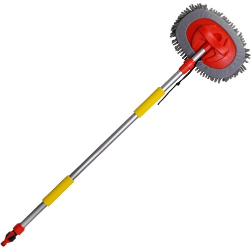 Возможность подключения к шлангу значительно ускоряет процесс уборки. Кран на рукоятке щетки позволяет регулировать напор воды. Рабочая поверхность щетки из микрофибры повышенной плотности отлично впитывает влагу, собирает грязь и пыль и не оставляет разводов. Мягкие волокна обеспечивают деликатную очистку и подходят для любых поверхностей. Головка швабры отсоединяется от рукояти. Благодаря специальной резиновой ручке на тыльной стороне ее удобно использовать отдельно. Рабочую поверхность из микрофибры просто поддерживать в чистоте. Она выполнена в виде съемного чехла с утягивающим шнуром на фиксаторе. Чехол просто снять, постирать в машинке и вернуть на головку щетки. Микрофибра не линяет и быстро сохнет. Телескопическая ручка выдвигается на необходимую длину для удобной очистки труднодоступных поверхностей. Длина швабры в сложенном виде - 100 см,