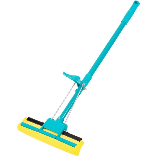 Бирюзовая отжимная швабра Palisad Home 93581 длиной 110 см, с телескопической рукояткой и полимерной губкой размером 26 x 5,5 x 6 см, используется для проведения влажной уборки. Губка из поливинилацетата хорошо впитывает влагу и эффективно удаляет загрязнения с напольных покрытий всех видов. Отжимной механизм позволяет исключить контакт рук с грязной водой, моющими средствами и обрабатываемой поверхностью. Преимущества Регулировка длины в диапазоне 75-100 см — благодаря телескопической рукоятке швабра подходит пользователям разного роста. Удобное использование — отжимной механизм позволяет регулировать степень влажности для разных напольных покрытий, а также экономит силы пользователя во время уборки. Аккуратная уборка — мягкая губка из поливинилацетата (PVA) не царапает поверхность, не оставляет ворсинок и разводов. Долговечность: губка устойчива к размножению бактерий благодаря свойствам затвердевания при высыхании. Удобное хранение — в рукоятке предусмотрено отверстие для подвешивания швабры.