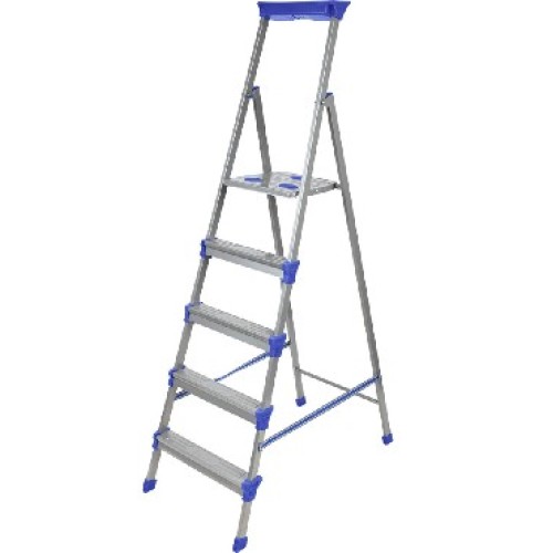 Стремянка металлическая 5 ступеней, высота до рабочей площадки 1065мм, ширина ступени 65мм, многофункциональный лоток для инструментов, страховочная лента, максимальная нагрузка 150кг