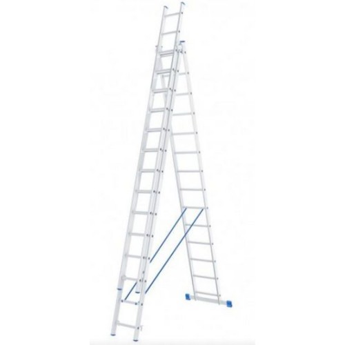 Алюминиевая трехсекционная лестница СИБРТЕХ 3х14 ступеней 97824 применяется для высотных работ, как покраска фасада дома, монтирование электроосветительных приборов, работа в саду и др. Трансформируется в четыре различные формы и подходит для выполнения работ на высоте до 7.5 м. Защиту от скольжения на рабочих поверхностях обеспечивают заглушки и широкая траверса. Технические характеристики СИБРТЕХ 97824 Тип трехсекционная Материал алюминий Рабочая высота, м 7,5 Max рабочая нагрузка, кг 150 Min длина, м 3,967 Ширина лестницы, мм 445 Количество ступеней, шт 3х14 Размер в сложенном состоянии, см 396.7х44.5х18 Регулировка опоры угловой траверсы нет min длина в сложенном состоянии, м 3.967 Вес, кг 18,3 Габариты, мм 3967х445х180