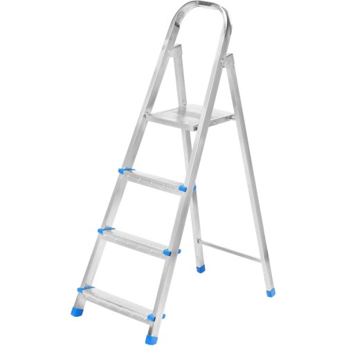 Стальная оцинкованная стремянка Сибртех 97836 с 4 ступенями позволяет повесить полку, картину или шкафчик, достать нужный предмет и решить другие задачи, для которых требуется доступ к предметам на высоте. Рама и ступени из стального профиля выдерживают вес до 120 кг. Расстояние от опорной поверхности до площадки составляет 76,5 см, при среднем росте пользователя 170 см рабочая высота лестницы — 276,5 см. Необходимо соблюдать технику безопасности: размещать стремянку только на ровной плоскости и не использовать ее для работы с дрелью, шуруповертом и другим электроинструментом.ПреимуществаПростая установка — на верхней площадке предусмотрены специальные зацепы для фиксации стремянки в разложенном состоянии.Антикоррозийная защита — стальная поверхность оцинкована, что увеличивает срок службы лестницы.Безопасное использование — рифленые ступени обеспечивают противоскользящий эффект, защитные накладки на углах исключают случайное травмирование пользователя.Аккуратное использование — ножки с противоскользящими накладками не повреждают напольное покрытие.Удобная эксплуатация — высокая дуга безопасности позволяет занять устойчивое положение.Компактность и малый вес — лестница весит 4,3 кг, размеры в сложенном состоянии составляют 1280 х 415 х 105 мм, что удобно для хранения и транспортировки.