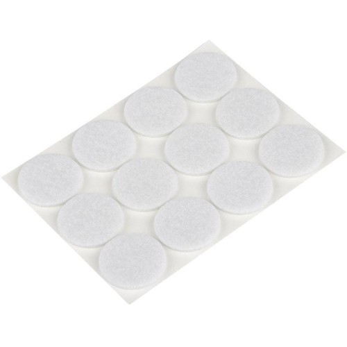 В упаковке: 12 шт Размер: 28х3мм Материал: 100% полиэстер, Цвет: белый упаковка: пакет+хеддер Предназначены для защиты полов из любого покрытия от сколов, царапин, потертостей, делает мебель более устойчивой.