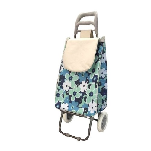 Тележка с сумкой "Незабудки" - размер тележки 34*28*96 см; - размер сумки 34*20*54 см; - диаметр колеса — 160 мм (пластик); - грузоподъемность: 25кг; - вес тележки: 1,6 кг Материал: cталь, пластик, эва, сумка — 100% полиэстер (600D) Упаковка: П/э пакет с биркой.
