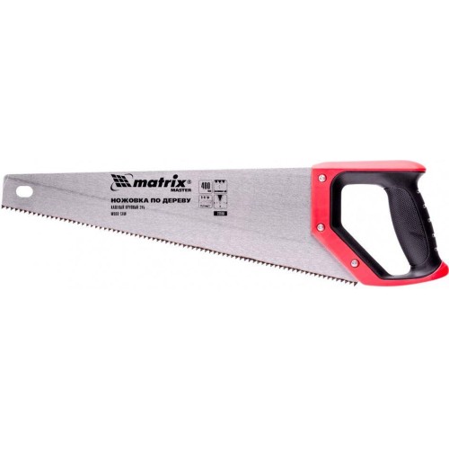Ножовка по дереву Matrix 23556 с полотном длиной 400 мм, с крупными калеными зубьями с шагом 5-6 TPI и 2D-заточкой, с двухкомпонентной рукояткой, используется для быстрой продольной или поперечной распиловки древесины. Высокая скорость работы достигается благодаря крупным зубьям с волновой заточкой и универсальным шагом 4-5 мм. Двухгранная заточка зубьев дает возможность пилить в направлении как от себя, так и на себя, а также перетачивать режущую кромку при необходимости. Ножовка подходит для выполнения плотницких и хозяйственных работ.ПреимуществаПолотно обладает высокой механической прочностью, поскольку изготовлено из пружинной стали 65Mn.Рабочая кромка долго сохраняет режущие свойства благодаря закаленным зубьям.Инструмент устойчив к коррозии, т.к. его полотно покрыто защитным лаком.Работа с ножовкой комфортна, поскольку эргономичная рукоятка с рельефной поверхностью не скользит в руке.Высокое качество ножовки подтверждено производителем, осуществляющим постоянный технологический контроль на всех этапах производства.