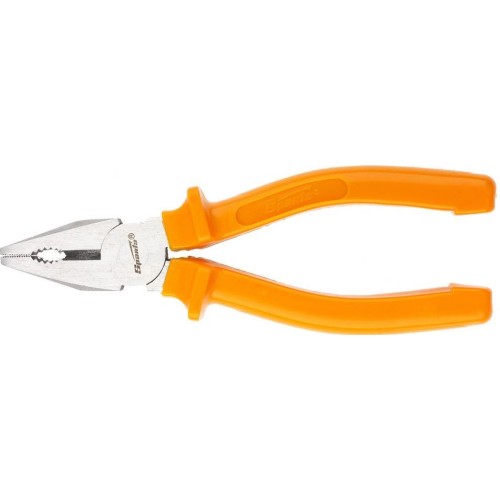 Шлифованные плоскогубцы Sparta Classic 16962 длиной 200 мм, с пластмассовыми рукоятками, позволяют удерживать, сгибать или выравнивать различные предметы. Губки со специальными выемками позволяют захватывать круглые детали, а режущие кромки легко перекусывают проволоку и провода. Плоскогубцы используются для решения профессиональных и бытовых задач. Преимущества Прочность и долговечность — рабочие части изготовлены из углеродистой стали 45 и отшлифованы. Эффективная работа — режущие кромки, закаленные токами высокой частоты до 53 HRC, справляются с твердой проволокой без потери остроты. Устойчивость к деформации при высоких нагрузках — твердость зажимных частей составляет 45,5 HRC. Эргономичность — пластиковые рукоятки снабжены упорами для пальцев.