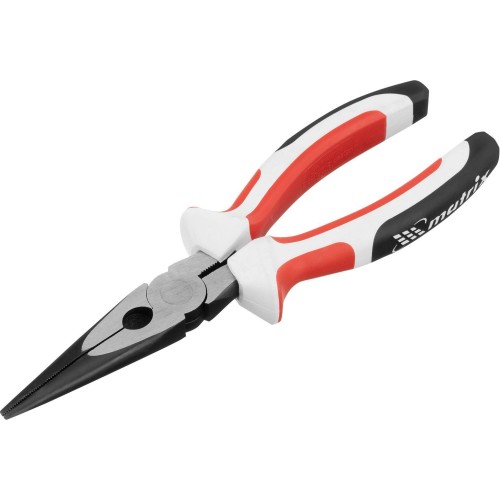 Прямые длинногубцы Matrix Premium 17187 длиной 200 мм, с трехкомпонентными рукоятками, позволяют захватывать и удерживать мелкие детали разной формы, загибать и перекусывать проволоку, прутки, провода. Облегчают работу в труднодоступных местах. Длинногубцы пригодятся слесарям, монтажникам и строителям. Преимущества Высокий ресурс — рабочие части прошли индукционную закалку до твердости 49-52 HRC. Долговечность — металлическая фосфатированная поверхность частично отшлифована, поэтому инструмент устойчив к коррозии и износу. Безопасность — широкие упоры на рукоятках предотвращают соскальзывание пальцев к рабочим частям и снижают риск травмирования. Комфортная работа — эргономичные трехкомпонентные рукоятки обеспечивают надежный хват и снижают нагрузку на руку мастера.