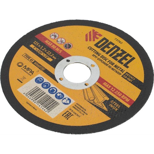 Отрезной круг по металлу Denzel WA60TBF 73762, 125 х 1,2 х 22,2 мм, рассчитан на интенсивную работу с УШМ соответствующего типоразмера. Он универсален по своему применению и подходит для резки углеродистой и нержавеющей легированной стали. Круг можно использовать не только в быту, но и для решения профессиональных задач.ПреимуществаАбразив из белого электрокорунда со специальными добавками эффективно режет материал без перегрева, в т.ч. нержавеющие стали, по сравнению с кругами из оксида алюминия.Благодаря толщине 1,2 мм и средней по плотности структуре круг быстро режет материал, кромка получается аккуратной.Теплостойкая бакелитовая связка с упрочняющими элементами подобрана оптимально, не теряет своих свойств при нагреве, поэтому отлично удерживает абразив даже при интенсивных нагрузках.Усиленная стеклосетка придает кругу высокую прочность на разрыв, что повышает безопасность работы.Круг прошел контроль качества на каждом этапе производства, что гарантирует его надежность и качество.