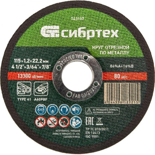 Отрезной круг по металлу Сибртех 743107, 115 х 1,2 х 22,2 мм, используется в качестве оснастки на УШМ для сухого реза изделий из углеродистых сталей: труб, арматуры, проволоки и т.д. Высокая производительность позволяет использовать круг как в быту, так и в частной мастерской или на небольших производствах.ПреимуществаАбразивные зерна из оксида алюминия имеют острые грани и легко справляются с резкой твердых материалов.Двухслойная усиленная стеклосетка придает кругу прочность на разрыв, что повышает безопасность работы.Бакелитовая связка с упрочняющими элементами обеспечивает максимальную износостойкость круга.Круг быстро режет материалы, позволяя получить аккуратный срез.Круг отличается превосходным качеством, т.к. изготовлен на высокотехнологичном оборудовании квалифицированным персоналом.