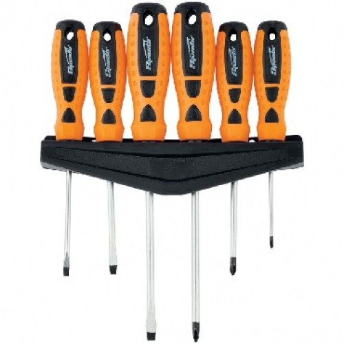 Новая серия отверток Point предназначена для монтажа и демонтажа резьбовых соединений разных типов и размеров. Жало отвертки намагничено и имеет фосфатированное покрытие. Стержень отвертки изготовлен из качественной хромованадиевой стали, имеет никелированное покрытие, устойчивое к воздействию коррозии. Твердость рабочей части 50-52 HRC. Двухкомпонентная рукоятка разработана с использованием последних технологий, что позволяет увеличить передачу крутящего момента и снизить нагрузку на запястье. Эргономичная форма обеспечивает удобство при продолжительной работе. SL4 x 100 мм, SL5 x 100 мм, SL6 x 150 мм, Ph0 x 80 мм, Ph1 x 100 мм, Ph 2 x 150 мм.