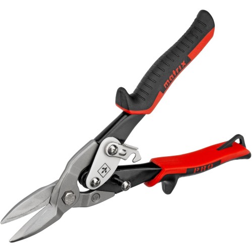 Ножницы по металлу Matrix PRO 78322 длиной 250 мм, из стали CrMo, с двухкомпонентными рукоятками, предназначены для прямого реза листовых и профильных металлических заготовок, в том числе стали толщиной до 1,2 мм и нержавеющей стали толщиной до 0,8 мм. Двойной рычажный механизм позволяет прикладывать значительное усилие при резке толстого материала. Для удобства работы на корпусе имеется маркировка с указанием направления резания. Ножницы будут полезны в профессиональной и домашней мастерской. Преимущества Долговечность — режущие губки из высокотвердой хромомолибденовой стали устойчивы к нагрузкам, масляное покрытие защищает лезвия от коррозии. Высокий ресурс — рабочие кромки, закаленные индукционными токами до твердости 55-60 HRC, долго сохраняют режущую способность. Эргономичность — двухкомпонентные рукоятки с рифленой поверхностью не выскальзывают из ладони, а упоры для пальцев обеспечивают безопасность во время работы. Удобное хранение и транспортировка — блокировочный замок не дает ножницам раскрыться, на рукоятке имеется петля для подвешивания инструмента.