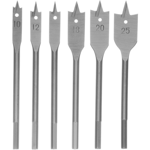 Набор Сибртех 704155 состоит из 6 перовых сверл по дереву размером 10-12-16-18-20-25 мм, с 6-гранным хвостовиком, используемых для получения глубоких сквозных отверстий в древесине. Ими также можно сверлить глухие отверстия, если нет строгих требований к форме их дна. Точное позиционирование сверл обеспечивают центральные шипы. Набор включает инструменты самых распространенных размеров и пригодится для сборки деревянных конструкций.ПреимуществаПрочность — сверла изготовлены из инструментальной стали 45 и устойчивы к динамическим нагрузкам.Износостойкость — рабочие кромки сверл твердостью 45-54 HRC долго сохраняют режущую способность.Надежная фиксация — сверла имеют 6-гранные хвостовики, поэтому не проворачиваются в патроне.