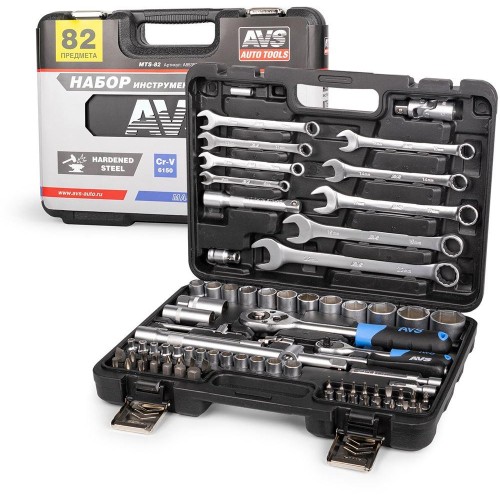 Может быть использован в гараже, в мастерской или в быту. Все компоненты набора изготовлены из высокопрочной закаленной углеродистой стали, имеют матовое хромированное покрытие, благодаря чему отличаются высокой прочностью и долговечностью. Трещотки оснащены храповым механизмом на 45 зубцов и имеют двухкомпонентные эргономичные рукояти. В набор входит 82 предмета. Состав набора указан на упаковке. Прочный кейс для удобного хранения и транспортировки. Привод 1/2“ DR • Головка торцевая 6-гранная: 14, 15, 16, 17, 18, 19, 20, 22, 24, 27, 30, 32 мм; • Головка торцевая свечная: 16, 21 мм; • Рукоятка трещоточная 45 зубцов; • Удлинитель: 125, 250 мм; • Адаптер для воротка 3/8" х 1/2"; • Карданный шарнир; • Держатель бит; • Ключ комбинированный: 8, 10, 11, 12, 13, 14, 17, 19, 22 мм. Биты 5/16"HDR х 30 мм • Бита шестигранная TORX: Т40, Т45, Т50, Т55; • Бита шестигранная: H8, H10, H12, H14; • Бита шлицевая: SL8, SL10, SL12; • Бита