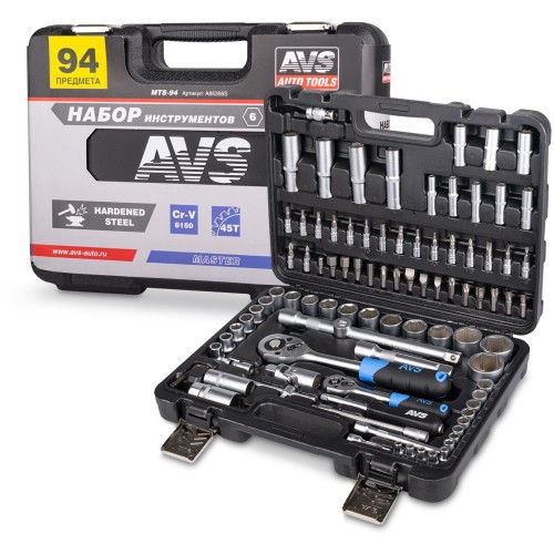 В набор входит 94 предмета. Привод 1/2“ DR • Головка торцевая 6-гранная: 10, 11, 12, 13, 14, 15, 16, 17, 18, 19, 20, 21, 22, 23, 24, 27, 30, 32 мм; • Головка торцевая глубокая 6-гранная: 14, 15, 17, 19 мм; • Головка торцевая свечная: 16, 21 мм; • Рукоятка трещоточная 45 зубцов; • Удлинитель: 125, 250 мм; • Адаптер для воротка 3/8" х 1/2"; • Карданный шарнир; • Держатель бит; • Ключ шестигранный Г-образный: 1.5, 2, 2.5 мм. Биты 5/16"HDR х 30 мм • Бита TORX: Т40, Т45, Т50, Т55; • Бита шестигранная: H8, H10, H12, H14; • Бита шлицевая: SL8, SL10, SL12; • Бита крестовая: PH3, РН4; • Бита POZIDRIV: PZ3, PZ4. Привод 1/4“ DR • Головка торцевая 6-гранная: 4, 4.5, 5, 5.5, 6, 7, 8, 9, 10, 11, 12, 13, 14 мм; • Головка торцевая глубокая 6-гранная: 6, 7, 8, 9, 10, 11, 12, 13 мм; • Рукоятка трещоточная 45 зубцов; • Удлинитель: 50, 100 мм; • Вороток Т-образный 115 мм; • Отверточная рукоятка; • Удлинитель гибкий 150 мм; • Карданный шарнир; • Головка со вставкой TORX