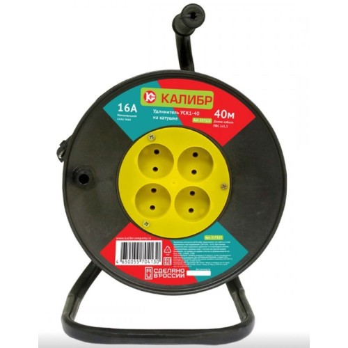 Удлинитель электрический "Калибр УСК1-40" на катушке предназначен для работы в сетях переменного тока напряжением 230±10%, ~50 Гц. При помощи удлинителя легко подключить удаленные от стационарной розетки электроприборы, имеющие шнур с плоской или круглой вилкой. Незаменим на стройке, на садовом участке, в промышленности и в быту. *в зависимости от поставки, внешний вид катушки может отличаться от представленного на фотографии. Сечение 1,5 мм2. Максимальная нагрузка 10 А, 2300 Вт. Длина кабеля 40 м.